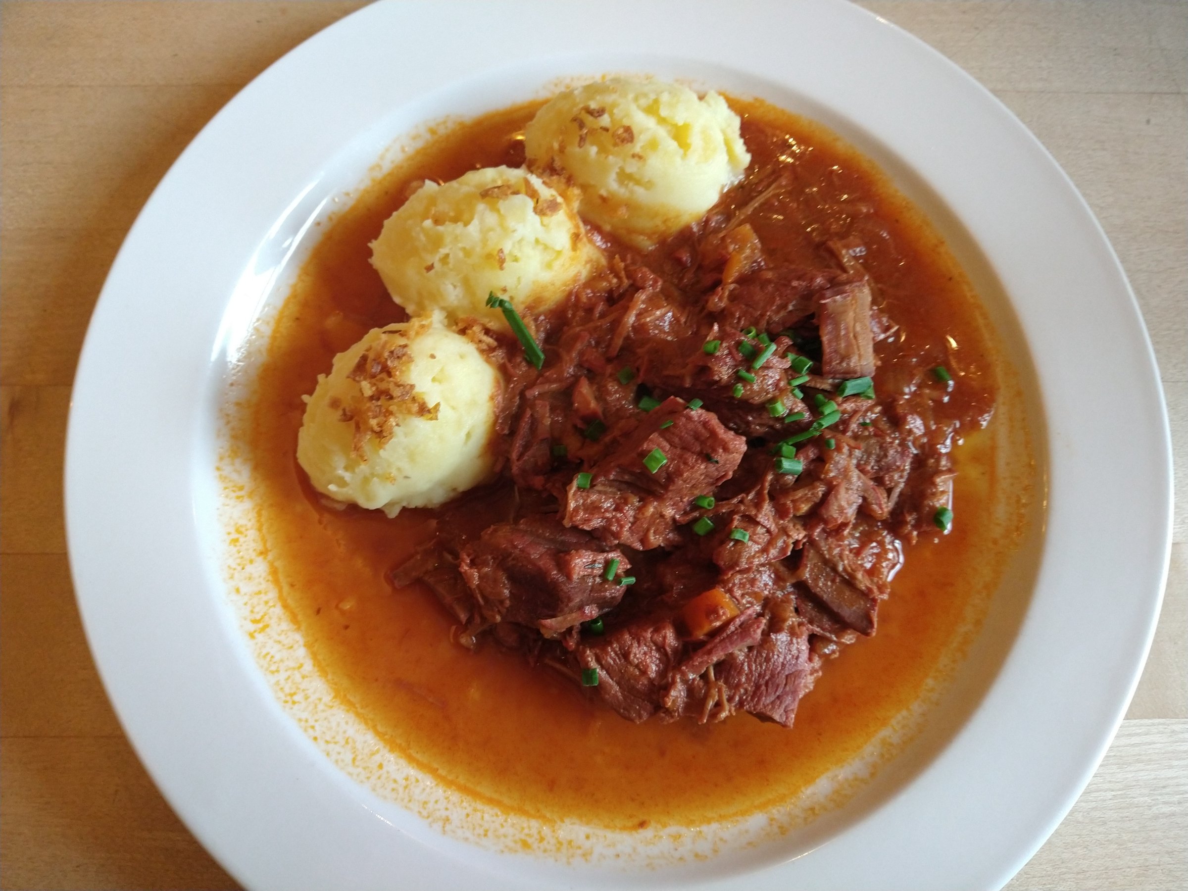 Ich komme wieder und werde wieder Biergulasch, ein Eintopf voll mit Rindfleisch und hochwertigem hauseigenen Bier, bestellen und alle Biere einmal durchprobieren. So viel Zeit möchte man mitbringen in die