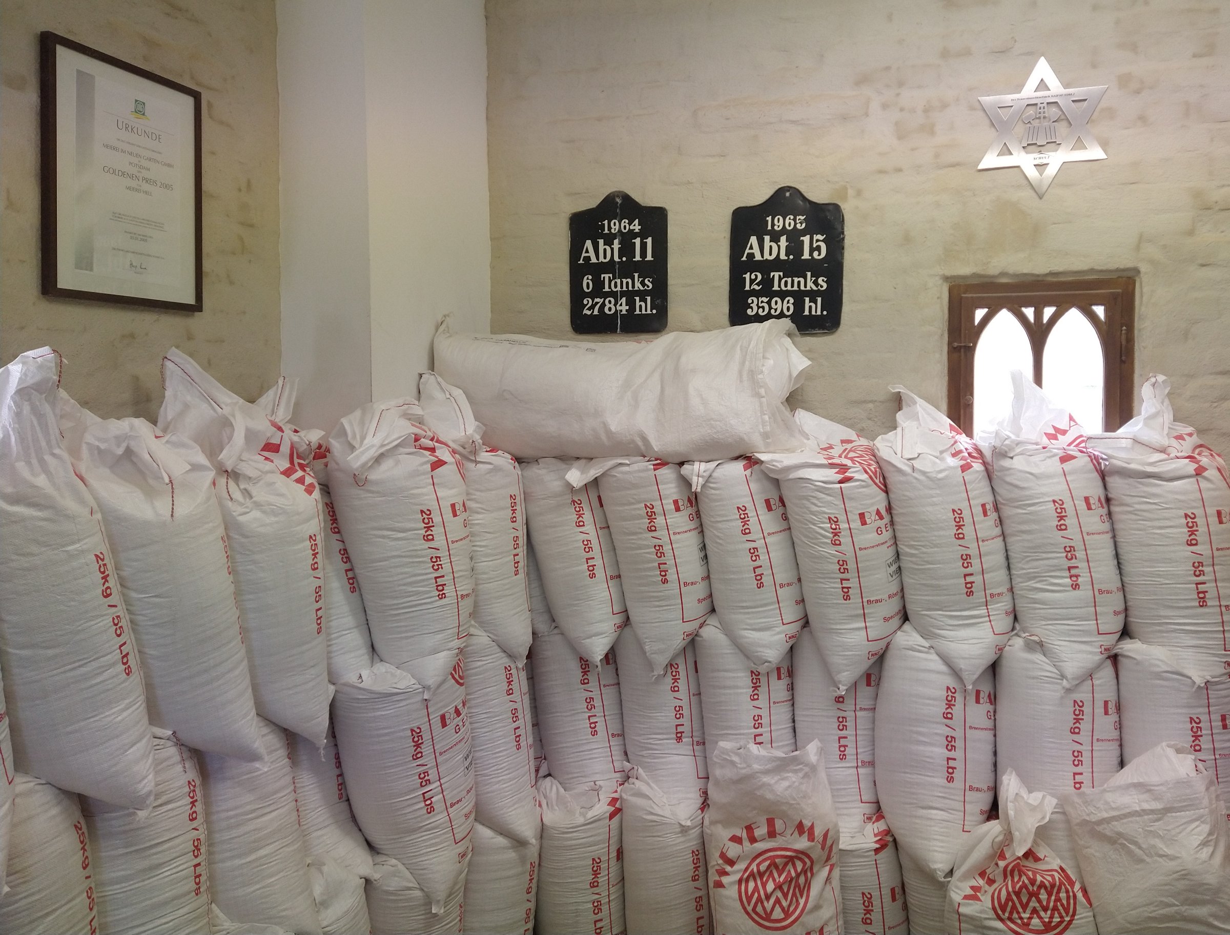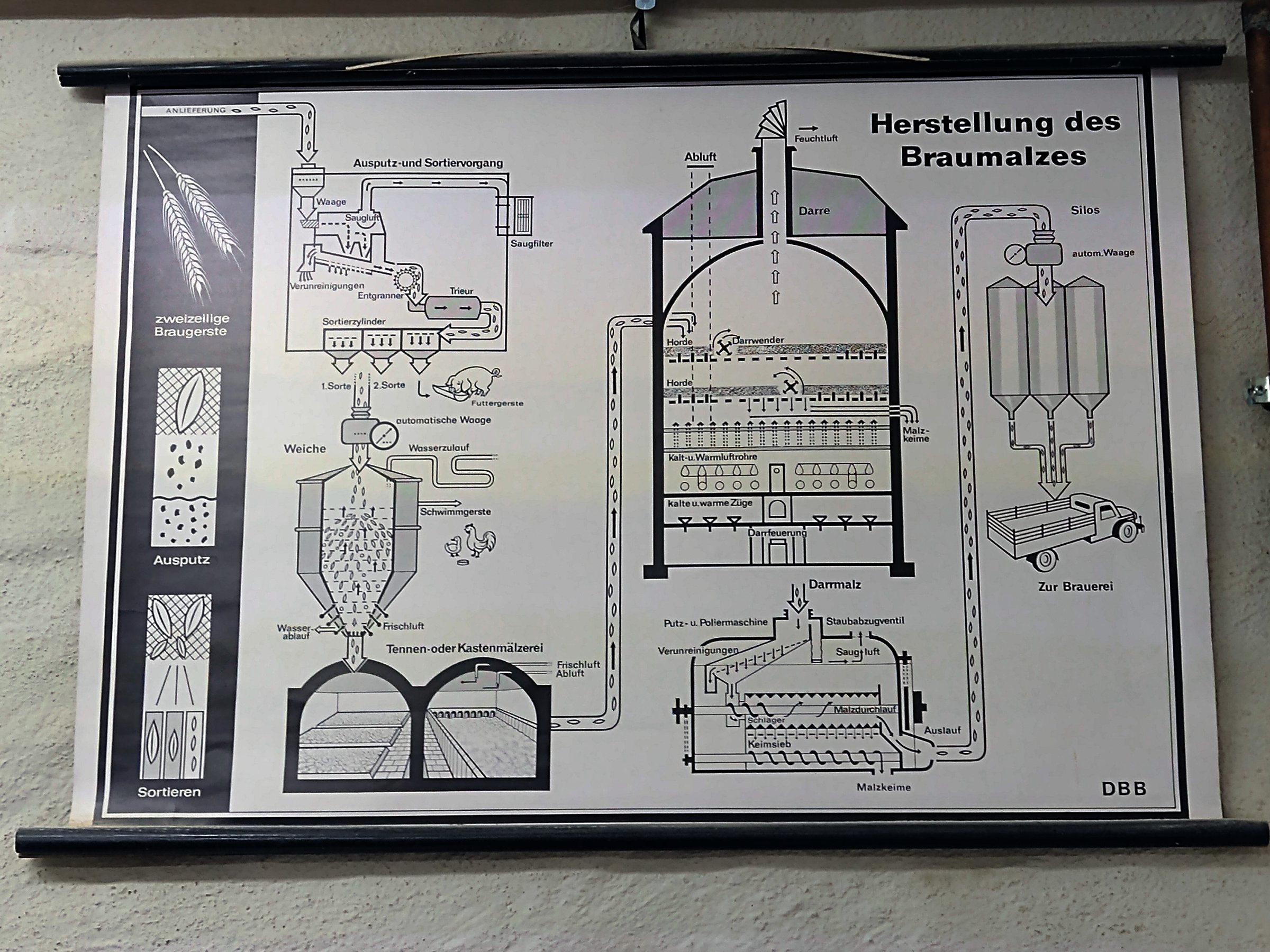 Daß „das Konzept der Meierei … auf die Brauertradition, nach der, bevor in Deutschland die ersten Großbrauereien entstanden (ab 1860), ein jeder Wirt sein eigenes Bier gebraut hatte“ zurückgreift, das schreibt Dr. Gabriele Horn. Über die „Geschichte der Meierei Potsdam“ weiß die Stiftungskonservatorin allerhand mitzuteilen, aber auch Brauer Jürgen-M. Solkowski, der durch die Brauerei führt. Oben in der Mälzerei beginnt die Führung und geht runter in den Südkeller, Gärkeller und Lagerkeller.