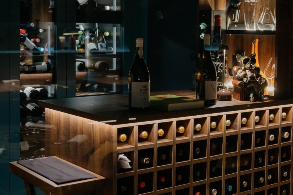 Die ist eine zum Speisesaal offene Küche, ja, eine Schauküche, mit einer Theke, die für zwei Gäste reicht und diesen ein besonderes Erlebnis bietet. Trinken am Tresen inklusive, aber nicht wie in einer Spelunke, auch wenn die Motive im Innere manche gute Gäste an das schöne Meer vor der Metropole Lissabon erinnern mag.