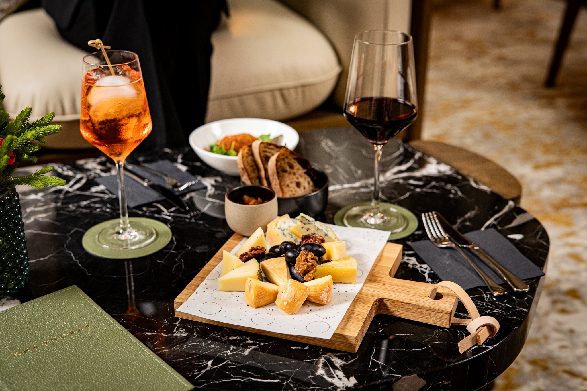 Wie die Stadt selbst verändert sich auch die CHRONOBAR im Laufe des Tages – kulinarisch wie atmosphärisch. Vom entspannten Start in den Morgen über produktive und genussvolle Tagesmomente bis hin zur lebendigen Abendstimmung entwickelt sich die Bar im Einklang mit einem klaren zeitlichen Rhythmus: Das Licht wird allmählich gedimmt, die Musik hörbar lebendiger, und Service wie Angebot passen sich fließend an – vom Frühstückskaffee mit Egg Royale bis zum Fleischerei Burger mit Pommes am Abend. So entstehen harmonische Übergänge von Tag zu Nacht, die den Wandel der Bar spürbar machen. Auch das Interieur prägt die Atmosphäre: Materialien wie Holz, Marmor und Metall greifen die rauen Facetten Berlins auf und verbinden sie mit subtiler Eleganz. Warme Farbtöne – tiefes Grün, Braun und ein sanftes Rot – schaffen zu jeder Tageszeit ein einladendes Ambiente.