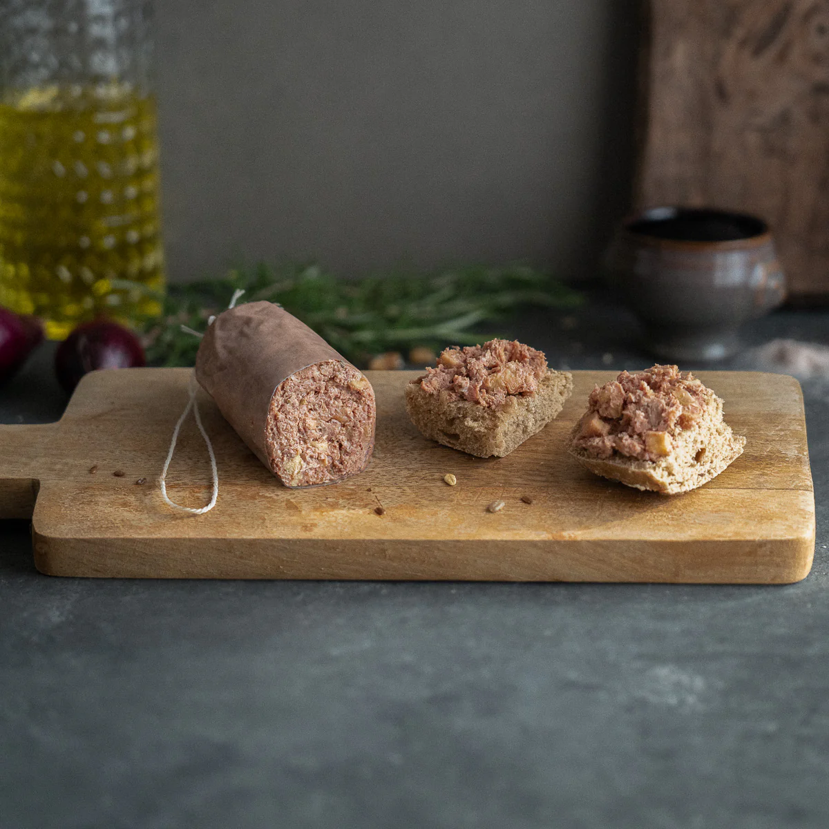 Daß die Leberwurst vom Hof Keil auch ohne Anrichten auf Brot ein Blickfang ist, das sieht jeder, der sie verkostet. Der Feinschmecker riecht und schmeckt „fruchtige Äpfel und würzige Zwiebel“, die – wie wahr – „der Leberwurst ein einzigartiges, mild-süßes Aroma“ verleihen, wobei die Zwiebeln eher mild schmecken und stimmen.
