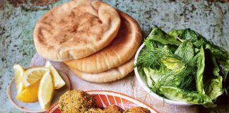 Borlotti-Bohnen, gehackter Salat und Tahin