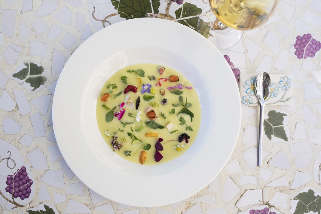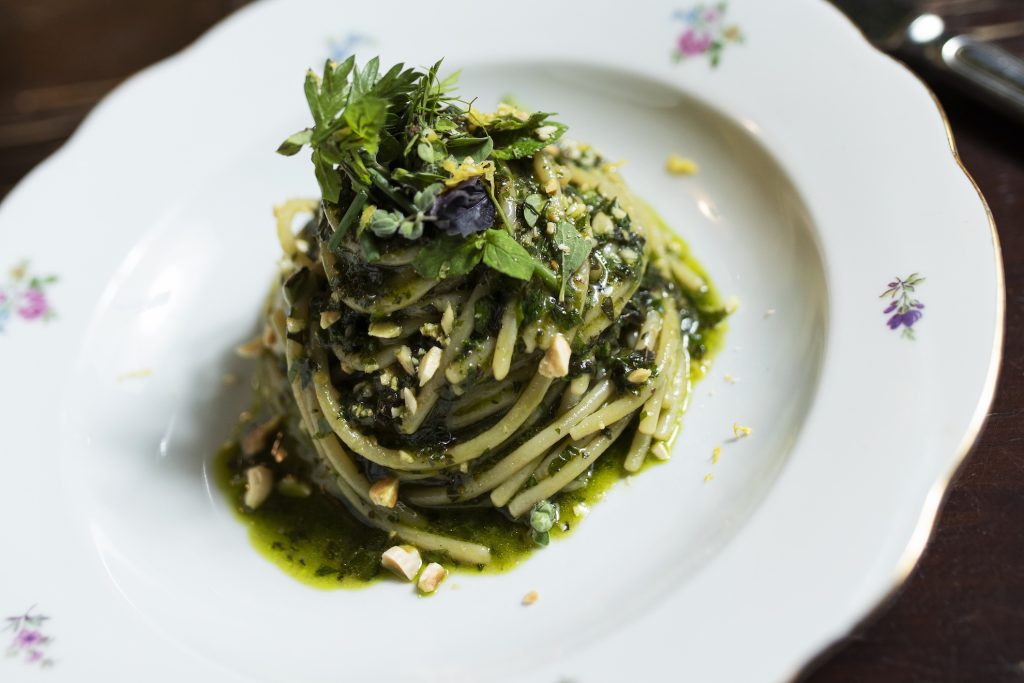 Koch Michele Biagiola läßt sich gerne zitieren. „Ich kann Leute nicht ausstehen, die die ‚Mutter‘ aller Küchen verändern. Diese Gerichte sind so, wie sie sind, wunderschön und verdienen Respekt“, sagt er und kocht, aber nicht vor Wut, sondern mit Kräutern der Provinz Macerata. Biagiola spricht auf von den bisogni della brigata (den Bedürfnissen der Brigade) und mir ist nicht ganz klar, ober er die der Küche oder der Roten meint.