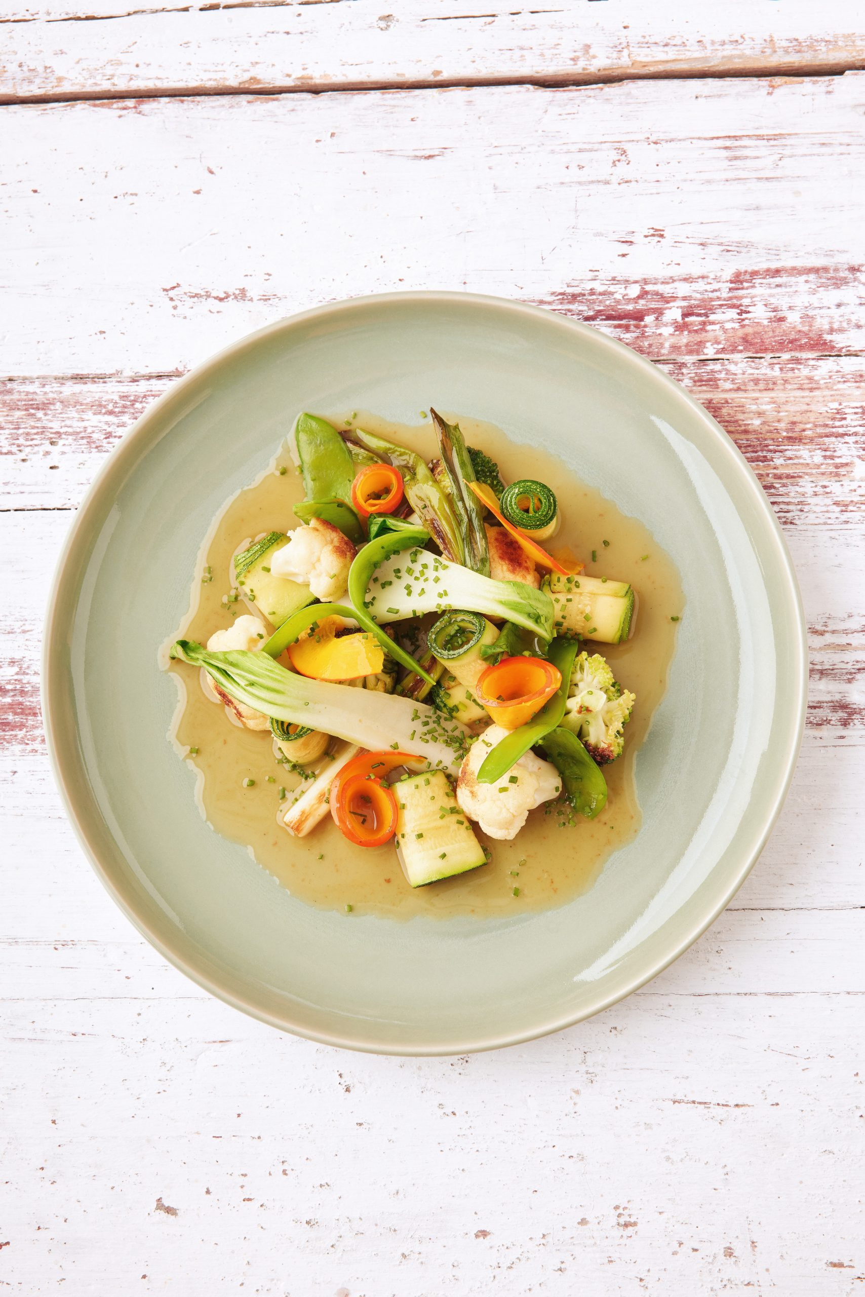 • 500 – 600 g gemischte Gemüse (z. B. Zucchini, Zuckerschoten, Blumenkohl, Kürbis, Lauchzwiebel, Pak Choi)