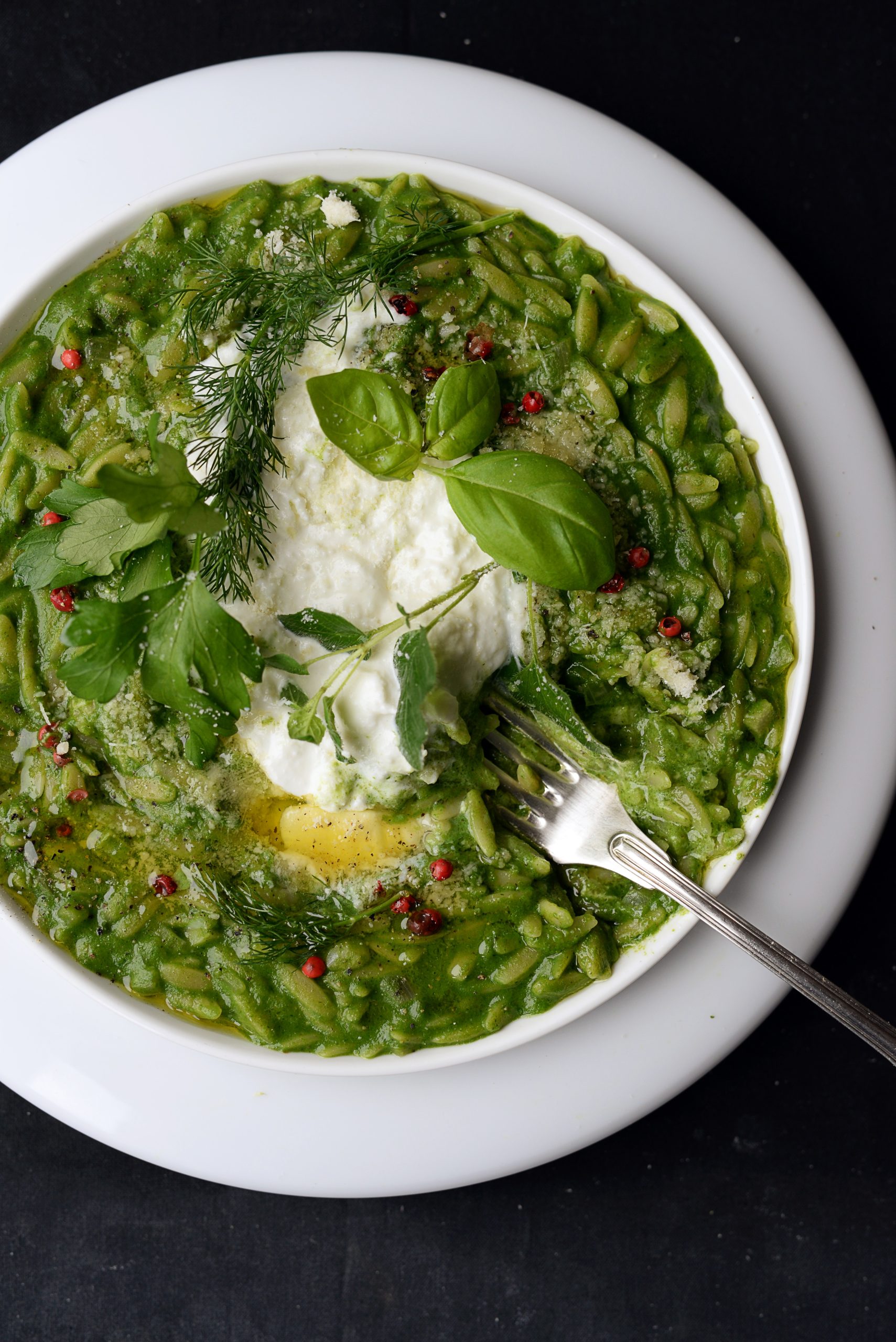 Kräuter-Orzo-Risotto mit Stracciatella – Risotto di orzo alle erbe con stracciatell