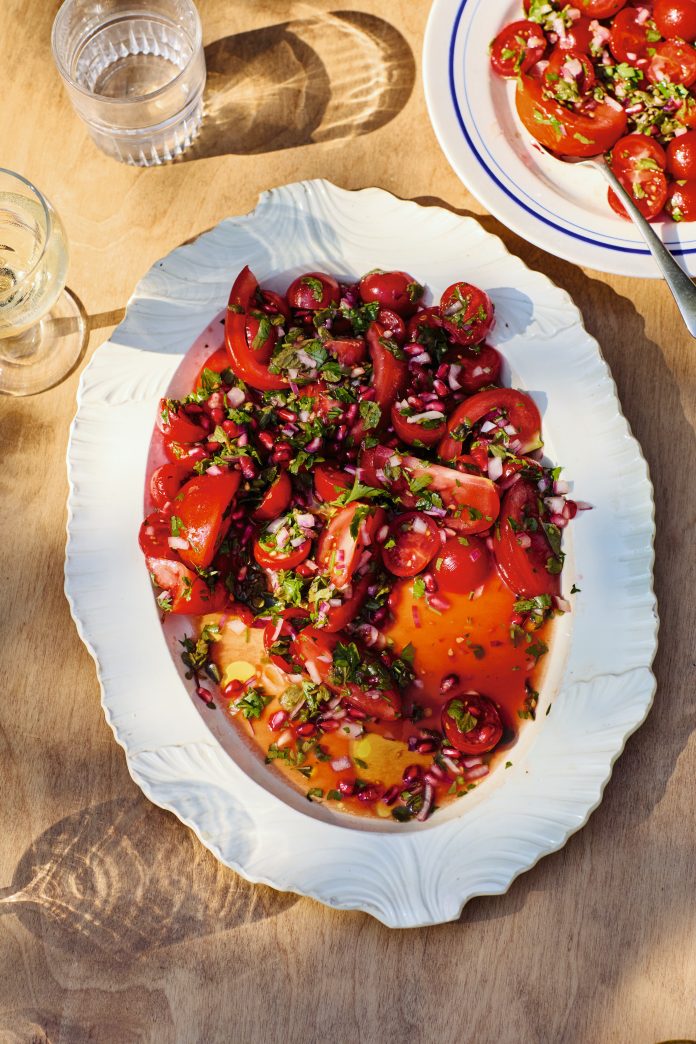 Vorstehendes Rezept „Tomatensalat mit Za’atar & Sumach – Salatet Za’atar w Banadoura bil Sumac“ befindet sich auf Seite 132 im Kochbuch „Boustany“ von Sami Tamimi, das im Juni 2025 im Verlag Dorling Kindersley erschien.