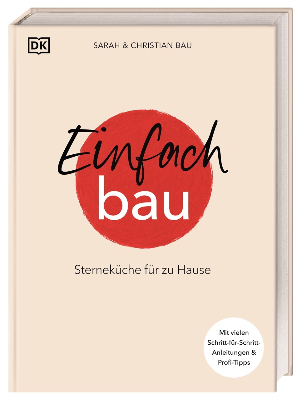 arah und Christian Bau, Einfach Bau, Sterneküche für zu Hause. Mit vielen Schritt-für-Schritt-Anleitungen & Profi-Tipps, 272 Seiten, mit farbigen Photographien und Anleitungsbildern, Sprache: Deutsch, Format: 205 x 279 mm, Bindung; , fester Einband mit Lesebändchen, Verlag: Dorling Kindersley Verlag GmbH, München, 1. Auflage 28.10.2025, ISBN: ISBN 978-3-8310-5081-9, Preise: 34,95 EUR (Deutschland), 36 EUR (Österreich)