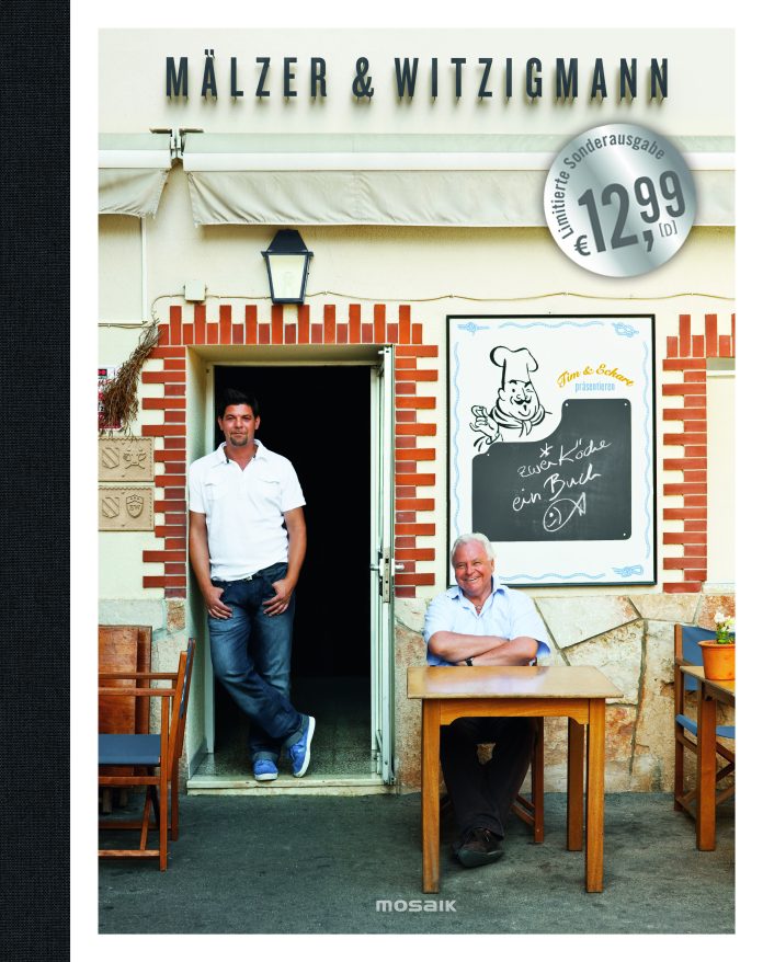 Tim Mälzer, Eckart Witzigmann, Mälzer & Witzigmann, Zwei Köche – ein Buch, 272 Seiten, 4-farbig, 300 farbige Abbildungen, Bindung: gebundenes Buch, Halbleinen mit zwei Lesebändchen, Format: 21,0 x 27,0 cm, Verlag: Mosaik im Konzern Penguin Random House Verlagsgruppe GmbH, München, 1. Auflage 3.12.2010, ISBN: 978-3-442-39195-0, Preise: 12,99 EUR (Deutschland), 13,40 EUR (Österreich), 18,50 SFr